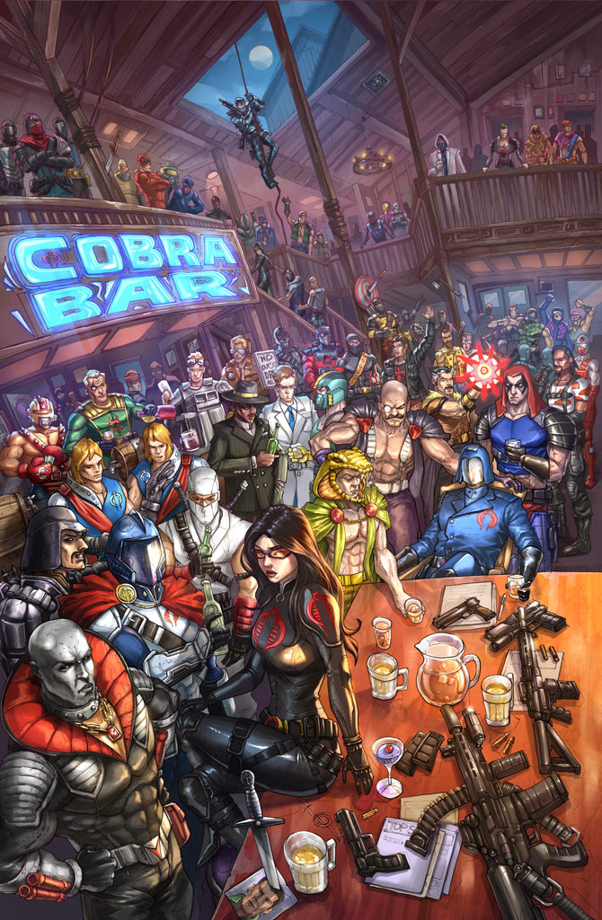 GI JOE REAL AMERICAN HERO #320 & 321 ALAN QUAH 616 COMICS COBRA & JOES BAR Virgin Color Variant Connecting Set LTD 750